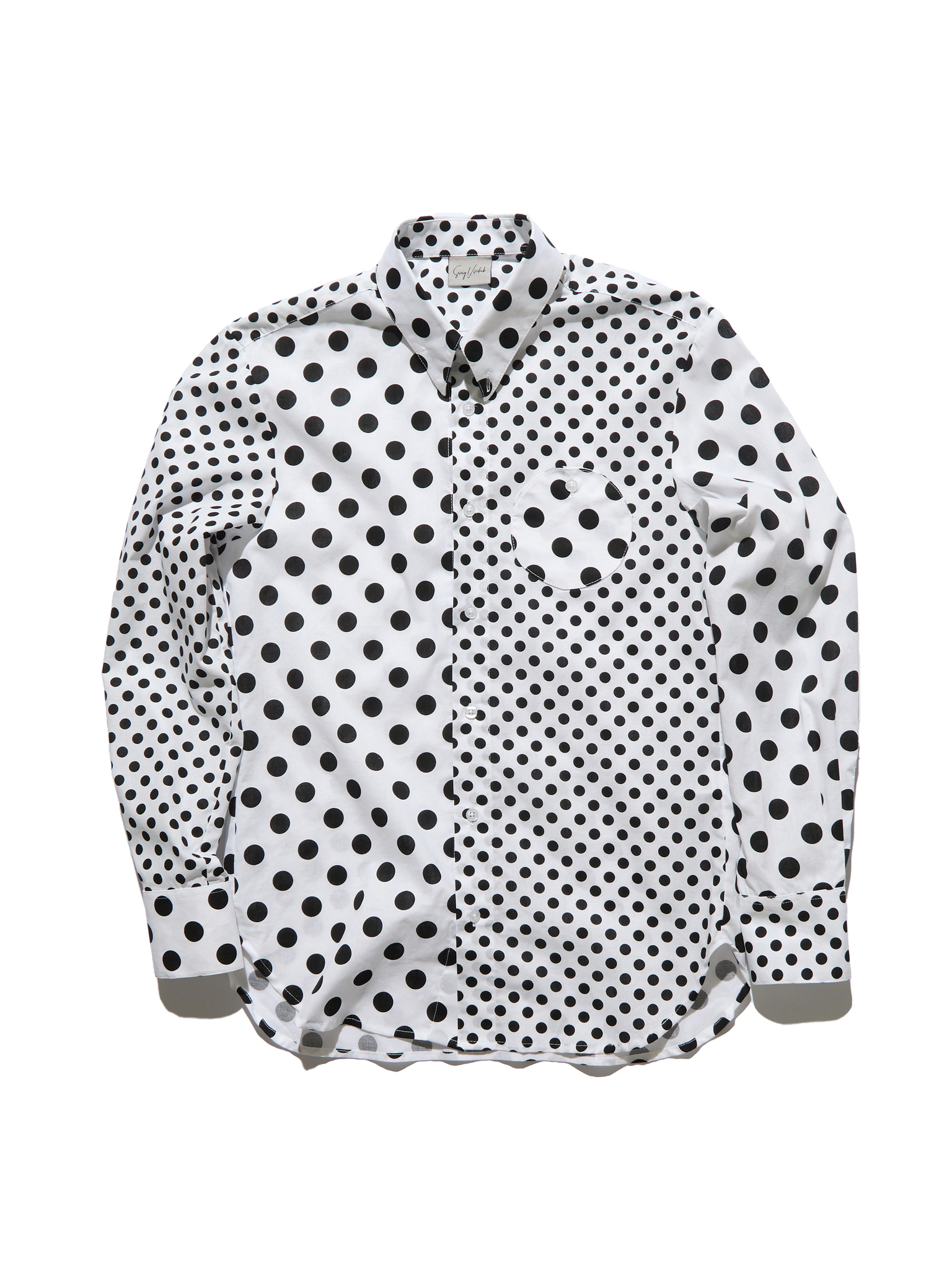 SHIRT IN TWO-SIZE POLKA DOT COTTON. CIRCULAR CHEST POCKET. BUTTON-DOWN COLLAR. SLIGHTLY TAILORED FIT. FOUR-BUTTON ADJUSTABLE BARREL CUFFS.