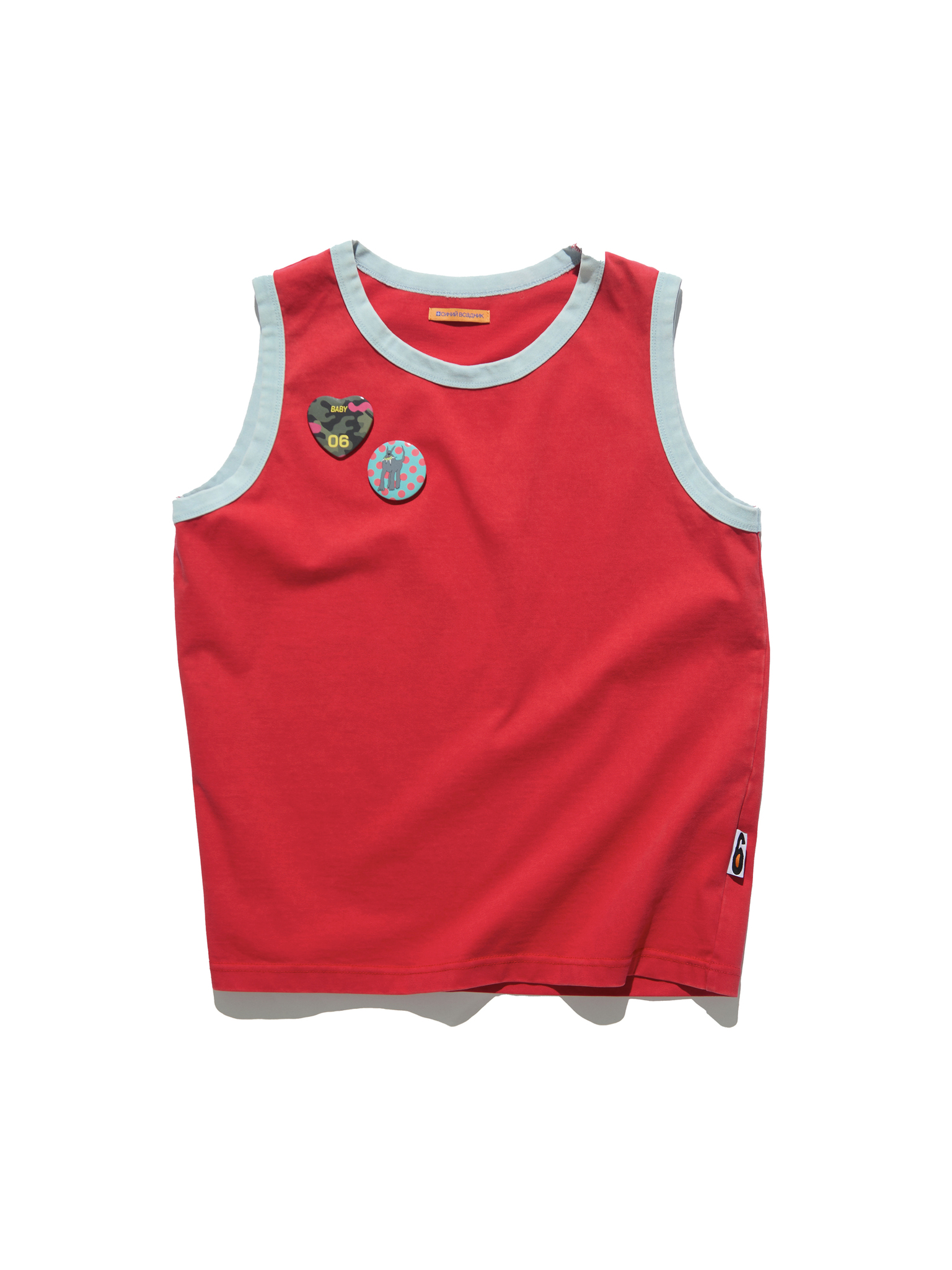 TANK TOP IN SILICONE-TREATED VINTAGE WASHED HEAVY COTTON. SLIGHTLY CROPPED FIT. CONTRAST RIBBING AT ARMHOLE AND NECKLINE. MOTTO PATCH AT SIDE SEAM. TWO BADGES ARE INCLUDED.Gleb is 185cm and wears size MAnya is 178 and wears size S