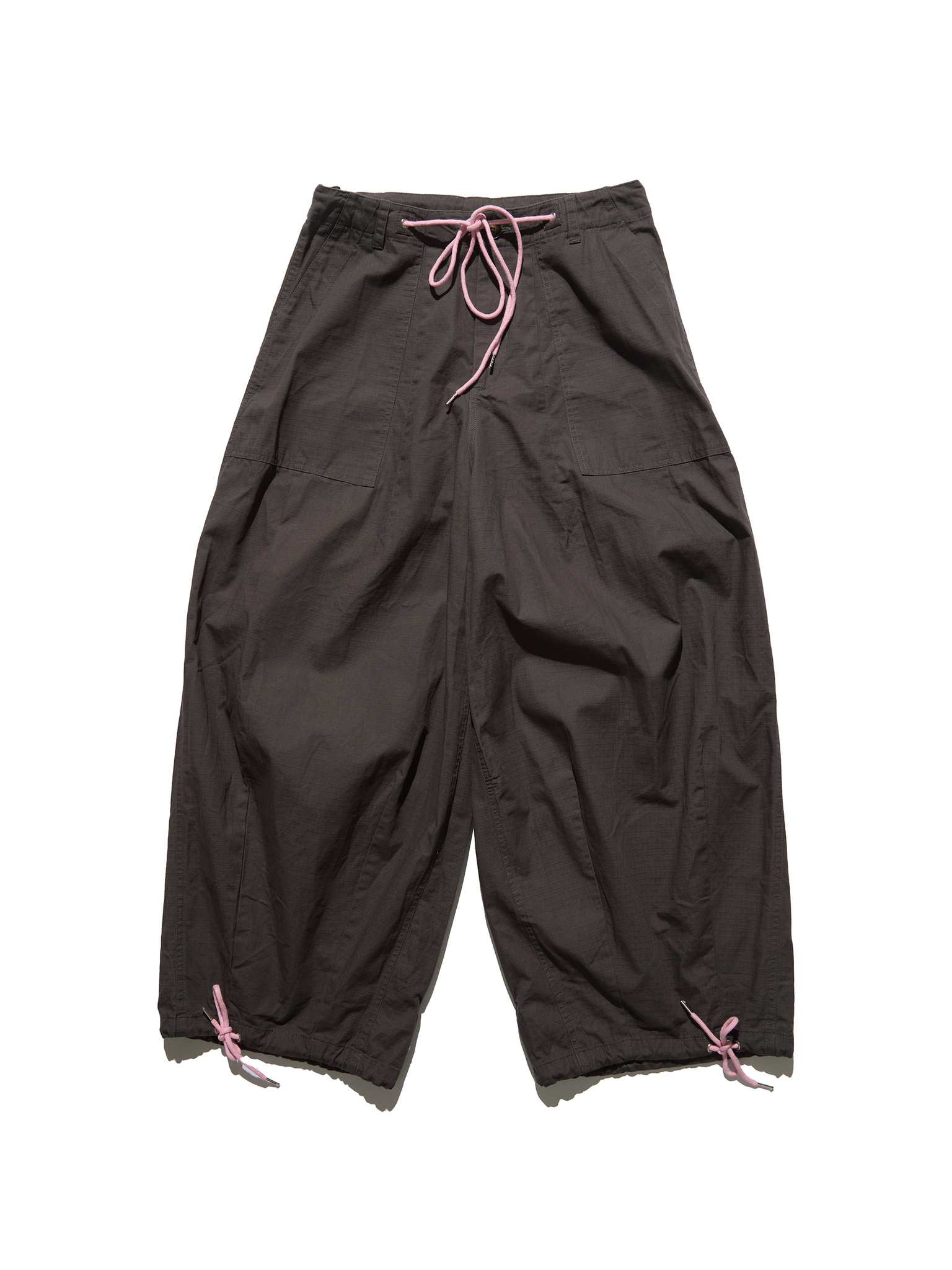 MONKS TROUSERS ARE MADE FROM COTTON VINTAGE WASHED RIPSTOP. DRAWSTRINGS ON THE SIDE SEAMS. LACES ON WAIST AND LEGS. YKK® HARDWARE. TWO ADDITIONAL POCKETS WITH BUTTONS AT THE BACK.Slava is 175 and wears size MRosya is 165cm and wears size S